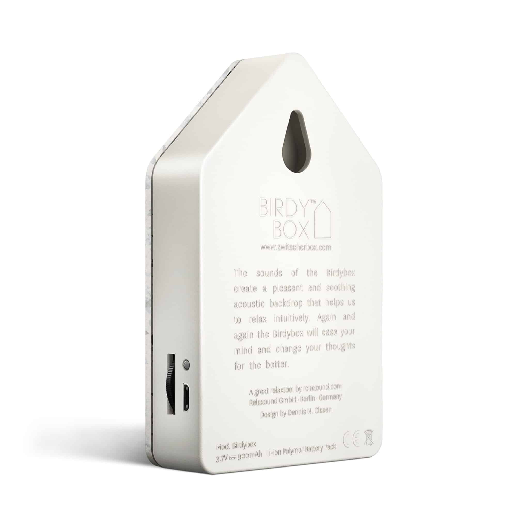De Birdybox is een product van het Duitse merk Relaxound, dat bekend staat om zijn innovatieve soundboxen die natuurlijke geluiden in je dagelijkse leven brengen. Hun missie is simpel: ze willen mensen helpen om op intuïtieve wijze te ontspannen en een moment van rust en vreugde te ervaren. Naast de Birdybox biedt Relaxound een collectie van andere soundboxen die elk hun eigen unieke geluiden en beleving bieden: