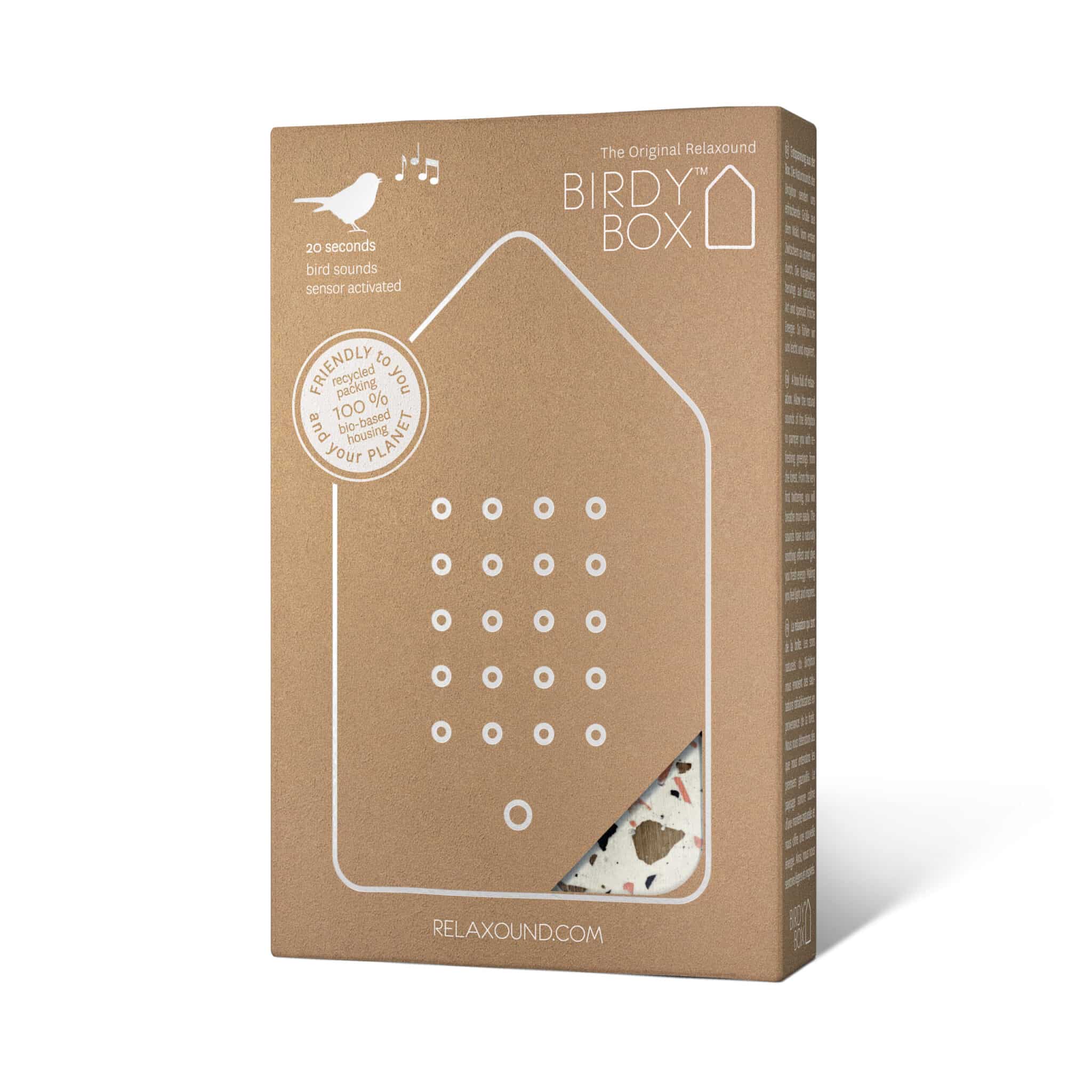 De Birdybox Toffee Terrazzo is jouw persoonlijke oase van rust en ontspanning, geïnspireerd door de natuur. Dit duurzame huisje met vogelgeluiden activeert zijn rustgevende zang zodra je in de buurt komt. Het verfrissende vogelgezang, dat 20 seconden duurt en wisselt tussen 6 vogelgeluiden, vult elke ruimte met kalmte en brengt een glimlach op ieders gezicht.