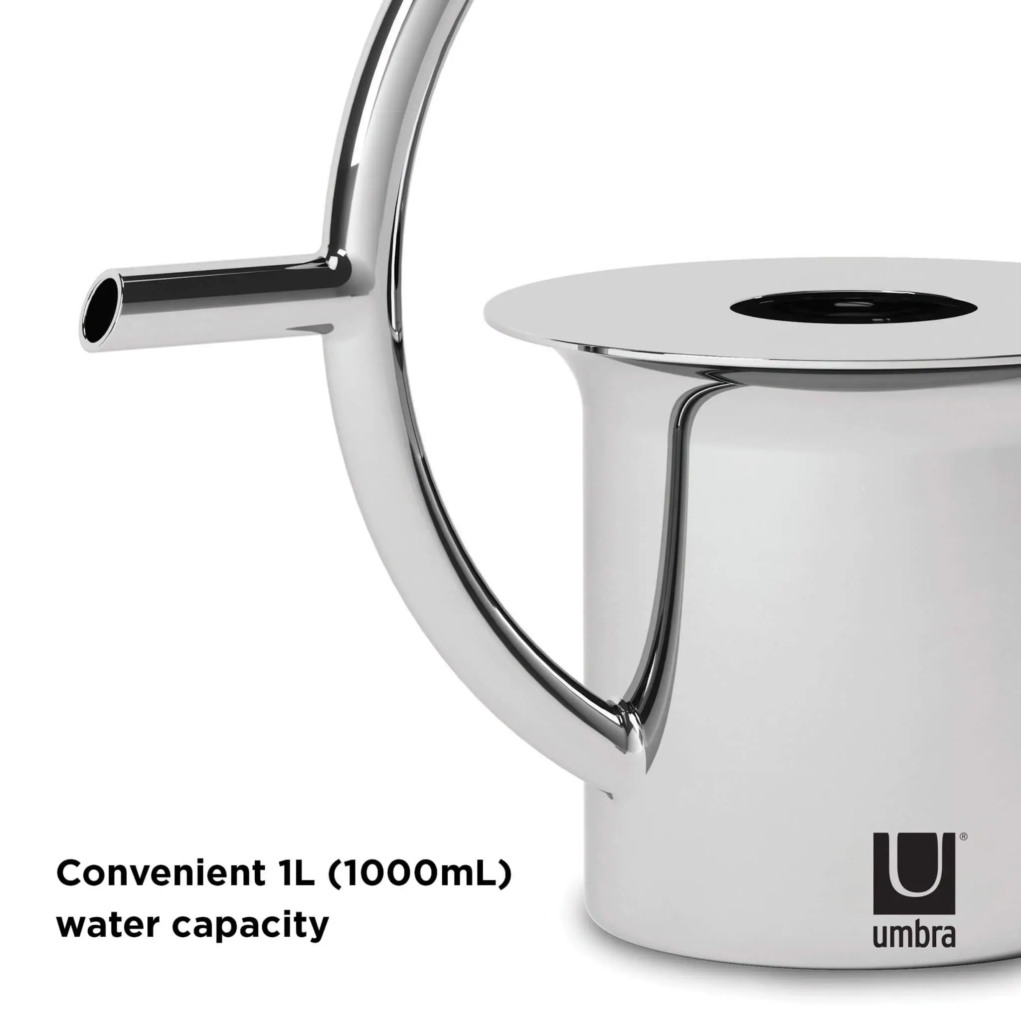 Doe geen moeite om deze gieter weg te stoppen als hij niet in gebruik is. Een blik dat even decoratief als functioneel is, Quench is een moderne en unieke gieter die het bewateren van planten een spannende taak maakt. Roestbestendig en gemaakt van roestvrij staal Quench heeft een glanzende metalen afwerking en is duurzaam om te dragen. Met een capaciteit van 1L (1000mL), een handvat van 360 graden en een halfopen bovenkant is dit blik gemakkelijk opnieuw te vullen en eenvoudig te bereiken moeilijke hoeken. Het unieke silhouet van Quench kan worden weergegeven en getoond op een vensterbank of plank dankzij het originele en eigentijdse ontwerp. Combineer Quench met een van Umbra’s plantenbakken voor een perfect duo of cadeau. Afmetingen 12 x 15 x 28 cm.