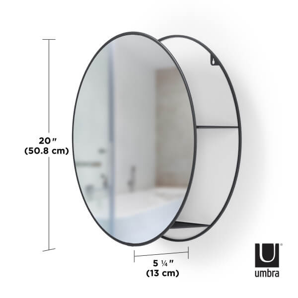 Veel werkbladen en tafels zijn vaak rommelig en ongeorganiseerd met alledaagse artikelen en producten. In een druk huishouden zijn praktische opslagoplossingen een must, maar vaak zien ze er omvangrijk uit of nemen ze cruciaal vloeroppervlak in beslag. In andere gevallen is er geen ruimte om spullen op te slaan en te organiseren, wat resulteert in een overvolle kast of lade. De Cirko spiegel van Umbra is zowel een praktische als decoratieve spiegel en opbergunit die in veel ruimtes goed past. De verborgen opbergplanken verbergen rommel en organiseren uw bezittingen terwijl ze worden opgeslagen achter een moderne en unieke grote ronde spiegel.