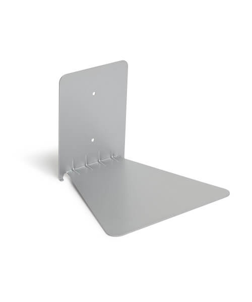 Als je echt een minimale look wilt, kies je voor de Conceal-boekenplank van Umbra. Je monteert hem aan de muur en vervolgens verdwijnt hij achter een stapel boeken, zodat die lijken te zweven in de lucht. Je hangt de robuuste, L-vormige plank aan de muur met de meegeleverde bevestigingsmiddelen en vervolgens schuif je één boek over de rand zodat die klem komt te zitten tussen de kaft van het boek en de pagina’s. Zet de kaft vast op zijn plek met de geïntegreerde klemmen onder de rand. Bovenop het eerste boek kun je kleine of middelgrote boeken tot 6,8 kilo kwijt, totdat de plank uit het zicht is verdwenen. De CONCEAL is gemaakt van sterk, gepoedercoat staal en is verkrijgbaar in twee afwerkingen. Het model is 14 x 17,8 x 16,5 cm groot. Dit gepatenteerde design van Miron Lior heeft al heel wat designprijzen gewonnen, waaronder de Pratt-designwedstrijd van Umbra. Een deel van de opbrengsten van dit product wordt gedoneerd aan de kunst- en designschool van het Pratt Institute. Ontworpen voor Umbra door Miron Lior – origineel, modern, casual en functioneel design voor thuis.