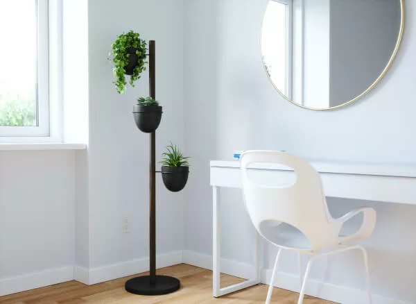 Deze opvallende plantenbak is groot en vrijstaand en brengt groen naar binnen en biedt tegelijkertijd een decoratieve touch aan de kamer met zijn metalen basis en gebogen potten. Met 3 duurzame en afneembare potten voor eenvoudig planten, is Floristand een unieke en eenvoudige manier om met uw planten te pronken en uw ruimte compleet te maken. Deze plantenbak neemt weinig ruimte in en beschikt over drie draadhouders die elk een van de 4″ ronde plantenbakken bevatten. De potten kunnen ook worden aangepast aan uw voorkeur. Floristand past netjes in hoekruimtes in elke woonkamer, eetkamer, slaapkamer, kantoor en meer.