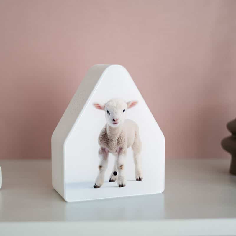 Ontdek de Heidibox Lammetje: een stijlvol huisje dat rustgevende lammetjesgeluiden afspeelt voor een ontspannen moment.