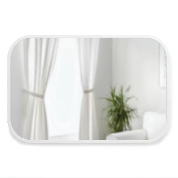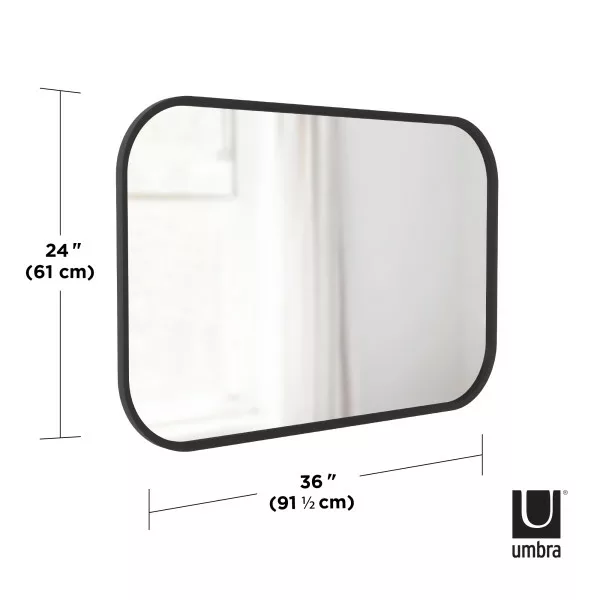 Hub Mirror Rectangular brengt een leuke en nieuwe vorm aan de klassieke Hub Mirror Family. Met een afmeting van 36 x 24 inch zal Hub niet alleen uw ruimte opfleuren, maar ook visuele diepte toevoegen om deze groter te laten lijken. Met zijn moderne zwarte rubberen rand die dienst doet als beschermende bumper, is deze decoratieve spiegel een perfect statement stuk in elke kamer.