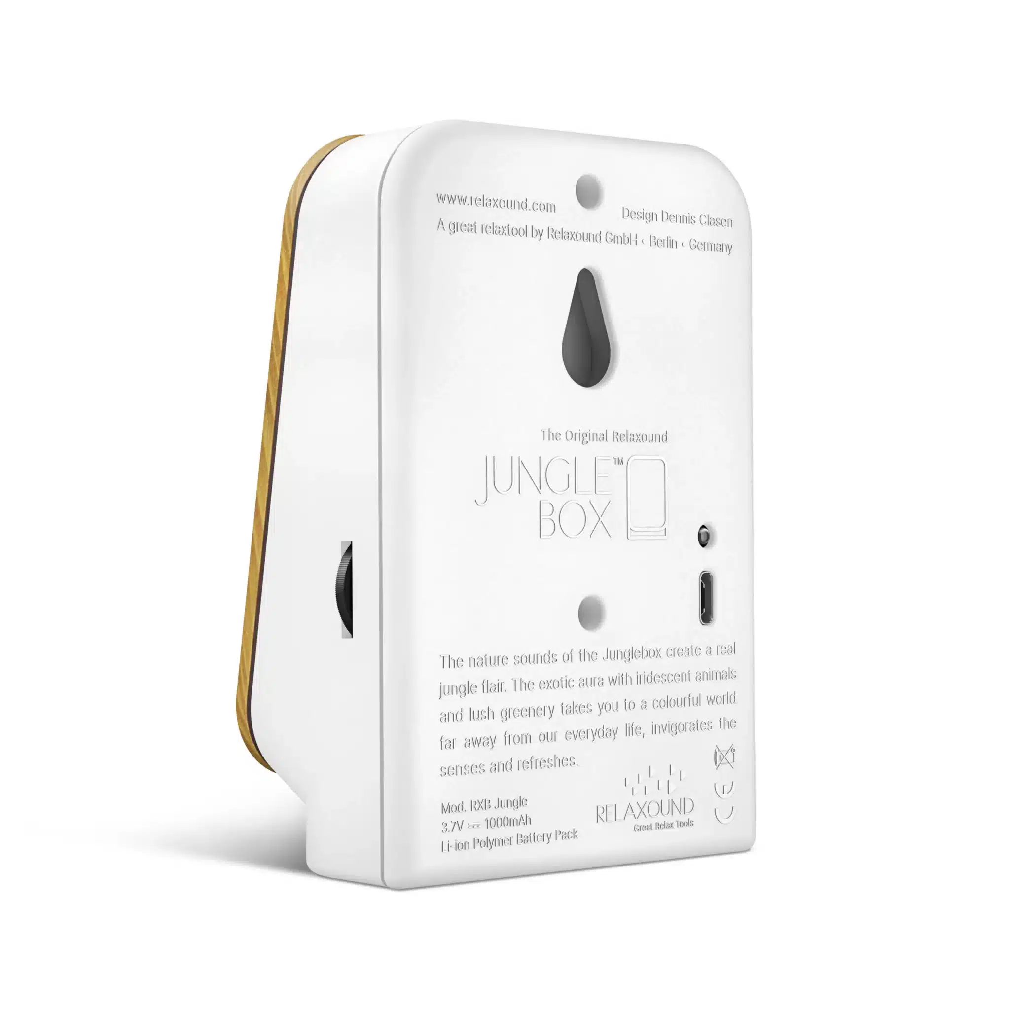 De Junglebox is een product van het Duitse merk Relaxound, dat bekend staat om zijn innovatieve soundboxen die natuurlijke geluiden in je dagelijkse leven brengen. Hun missie is simpel: ze willen mensen helpen om op intuïtieve wijze te ontspannen en een moment van rust en vreugde te ervaren. Naast de Junglebox biedt Relaxound een collectie van andere soundboxen die elk hun eigen unieke geluiden en beleving bieden: