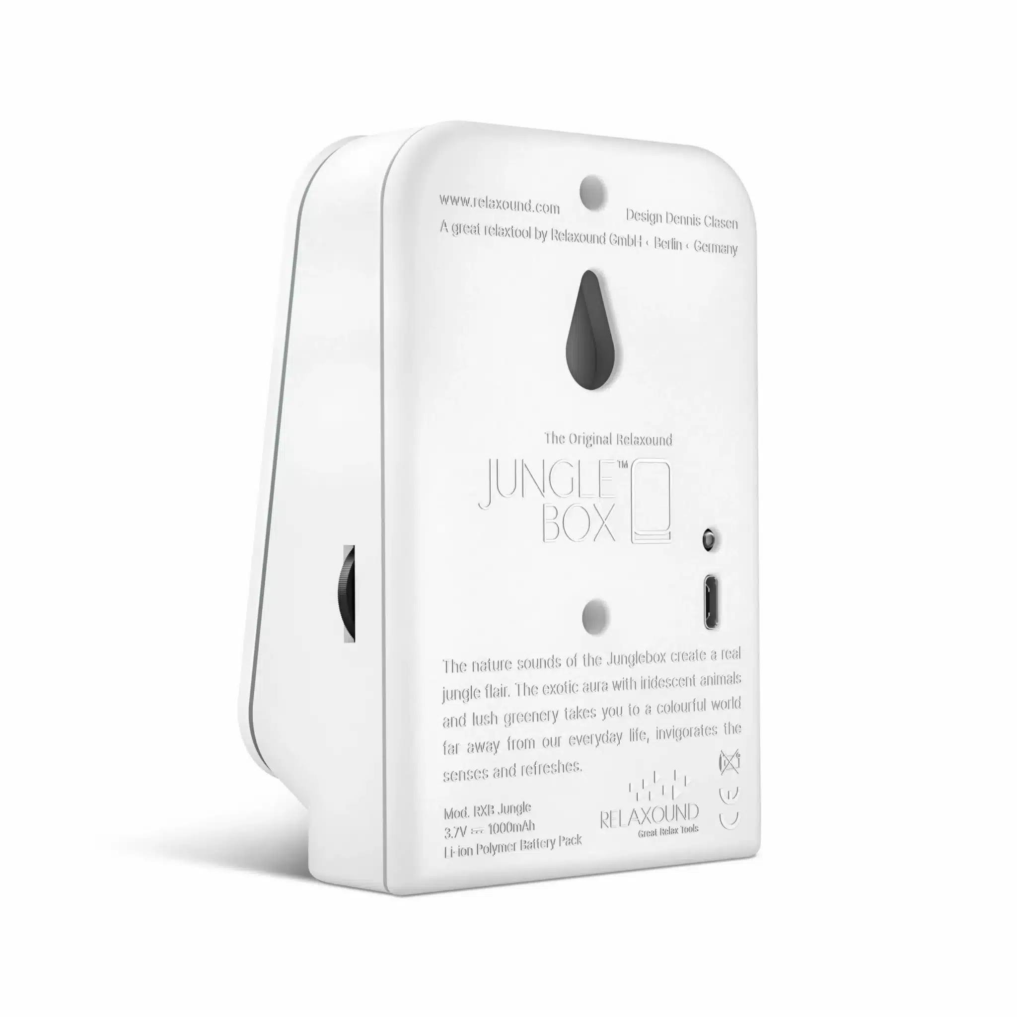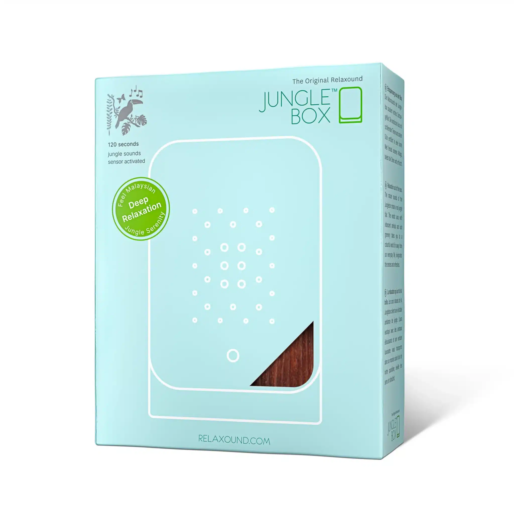 De Junglebox is een product van het Duitse merk Relaxound, dat bekend staat om zijn innovatieve soundboxen die natuurlijke geluiden in je dagelijkse leven brengen. Hun missie is simpel: ze willen mensen helpen om op intuïtieve wijze te ontspannen en een moment van rust en vreugde te ervaren. Naast de Junglebox biedt Relaxound een collectie van andere soundboxen die elk hun eigen unieke geluiden en beleving bieden:
