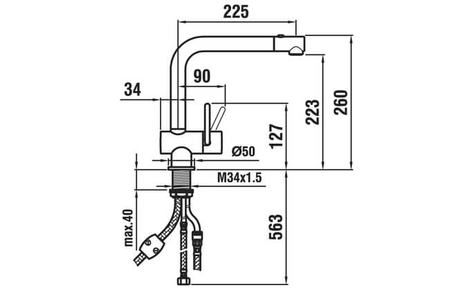 Het uittrekbare mondstuk heeft twee standen: een normale stand voor het vullen van potten en pannen, en een douche-stand voor het spoelen van groenten of het schoonmaken van de gootsteen en keukengerei. Het mondstuk heeft ook een terugslagklep, waardoor het water niet terug kan stromen in de kraan en er geen verontreiniging van het drinkwater kan plaatsvinden.