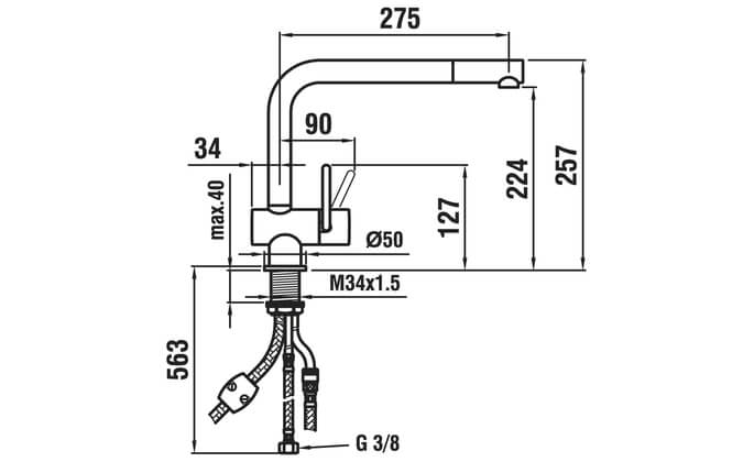 Bij montage b1 dikkere werkbladen van 60mm dient een verlenghuls M34 bij besteld te worden.