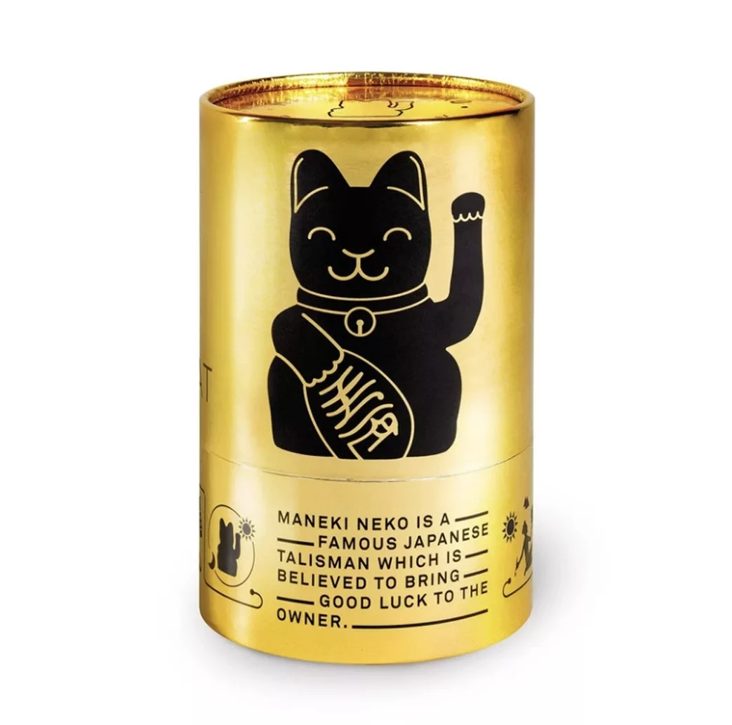Haal het geluk in huis met deze ‘Lucky Cat’ van het Duitse merk Donkey. Het gelukskatje in een Japanse talisman en word daar Maneki Neko genoemd. De wekende kat brengt de bezitter geluk in Passie en Energie. Het muntje, een Koban, wat de kat bij zich draagt staat voor “SEN MAN RYOU”, wat 10 miljoen goudstukken betekent. Hoe dan ook, als talisman zal ik je 100% geluk brengen. Leuk als cadeau!