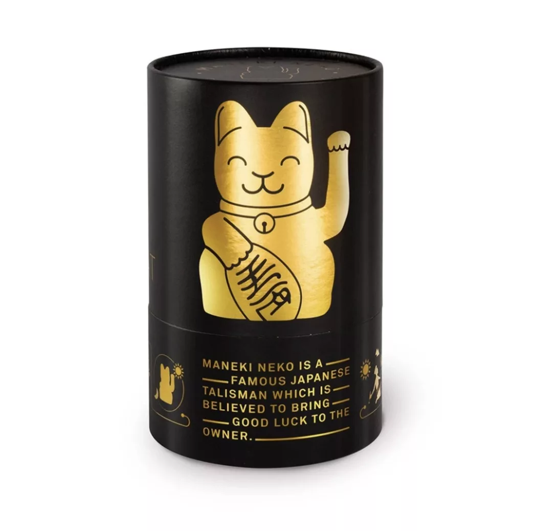 Haal het geluk in huis met deze ‘Lucky Cat’ van het Duitse merk Donkey. Het gelukskatje in een Japanse talisman en word daar Maneki Neko genoemd. De wekende kat brengt de bezitter geluk in Passie en Energie. Het muntje, een Koban, wat de kat bij zich draagt staat voor “SEN MAN RYOU”, wat 10 miljoen goudstukken betekent. Hoe dan ook, als talisman zal ik je 100% geluk brengen. Leuk als cadeau!