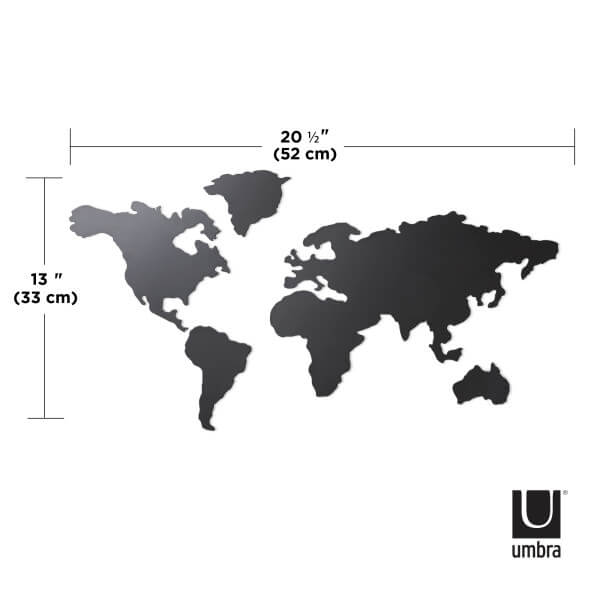 Herinner, droom en geniet met dit Mappit memobord van Umbra. Het magnetische memobord is gemaakt van titanium en heeft de vorm van een wereldkaart. Hang mooie fotos van vakanties en andere herinneringen op als een geweldige flashback naar je reizen. Markeer met magneten de plekken die je graag nog eens wilt bezoeken of plan een spannende roadtrip. Het memobord meet 83,6 x 42,6 cm.