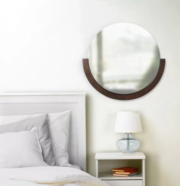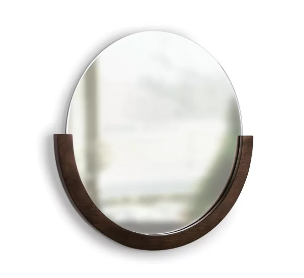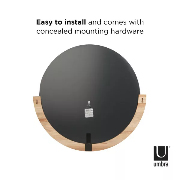 Mira’s interessante ontwerp met de halve lijst is een mooie en subtiele wanddecoratie. Als je een kamer groter wilt laten lijken, helpt deze spiegel je ogen te bedriegen, omdat hij het licht gemakkelijk door de kamer laat weerkaatsen. Of het nu in de entree, kantoor, woonkamer of slaapkamer is, de Mira wandspiegel is veelzijdig en siert elke kamer van je huis. De esthetische ronde spiegel met half houten frame is 56,5 x 53,5 x 2,5 cm en geeft elke wand een warme en moderne touch. Over Umbra: Umbra is een internationaal designbedrijf dat bekend staat om originele, moderne, stoere, functionele en betaalbare producten voor wonen & leven.