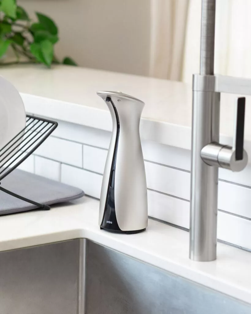 De Otto Sensor zeeppomp van Umbra zorgt voor ultieme hygiëne in uw keuken en badkamer. U hoeft alleen uw handen voor de dispenser te houden en er wordt automatisch zeep of desinfecterende handgel gepompt.