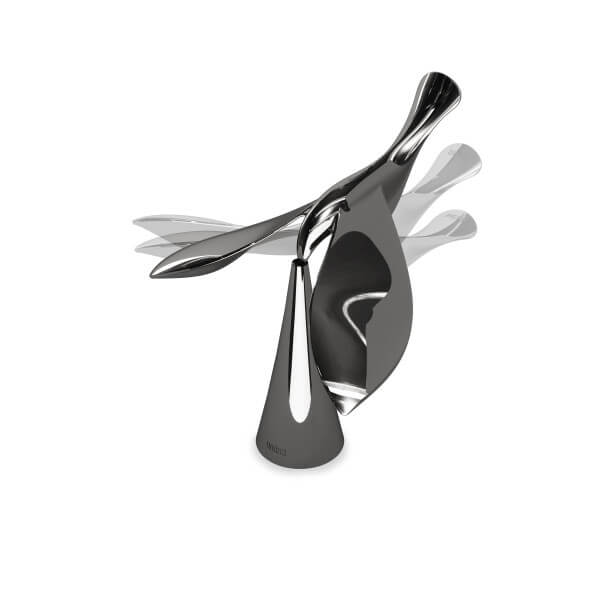 Een bar accessoire dat mag getoond en gezien worden. De Tipsy flesopener van Umbra is zowel decoratief als functioneel. Als een elegante stalen vogel balanceert de flesopener op zijn eigen stand (inclusief) of op eender welk randvlak. Tip: ook leuk om cadeau te geven!