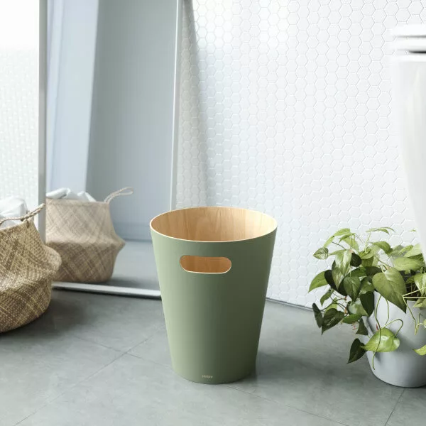 De Woodrow afvalemmer van Umbra is vervaardigd van hout en ideaal om te gebruiken voor het scheiden van papieren afval. De emmer heeft een groene coating aan de buitenkant en heeft één handvat om de emmer gemakkelijk te legen.