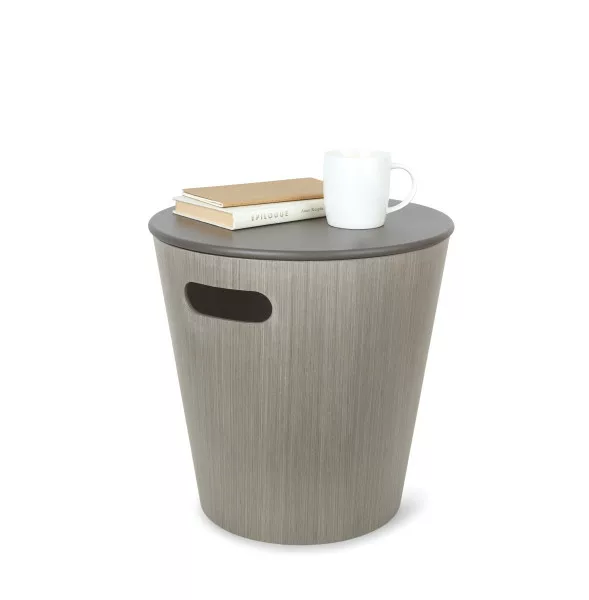 De deksel is tegelijkertijd ook een tafelblad of zitplek, en dankzij de geïntegreerde handvatten kun je hem eenvoudig verplaatsen in huis. De ottoman is 40 x 28 x 41 cm groot, dus je kunt er ook grotere voorwerpen zoals dekens in kwijt. Het maximale gewicht dat hij kan dragen is 113 kg. Op zoek naar een eigentijds opberg- en zitmeubel? Bestel dan nu deze warme en veelzijdige ottoman. Over Umbra: Een internationale ontwerpstudio van producten voor thuis met een origineel, modern, casual en functioneel design.