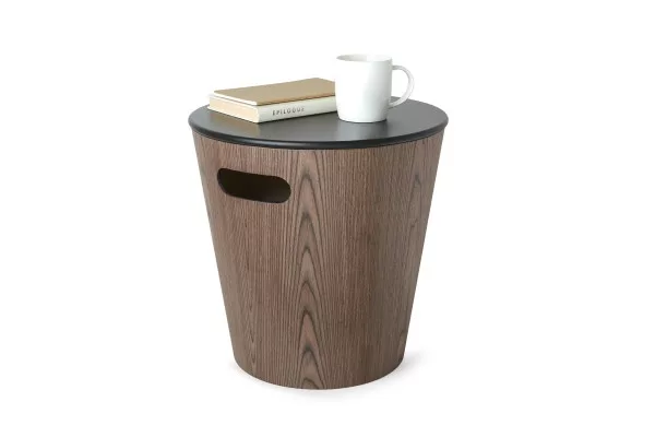 Als je een klein huis hebt of van meubels houdt die echt twee (of drie) functies kunnen vervullen, is dit dé oplossing voor jou. Nieuw: de WOODROW-opberg-ottoman van Umbra. De WOODROW is een eigentijdse, strakke variant van de traditionele ottoman. Hij heeft een prachtige, natuurlijke houten afwerking en een mooie geometrische vorm waarbij behandeld hout is gebogen tot een toelopende cilinder.