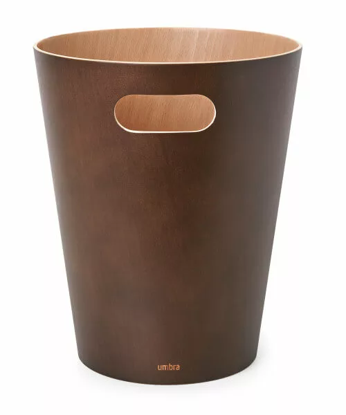 De Woodrow prullebak van Umbra is vervaardigd van hout en ideaal om te gebruiken voor het scheiden van papieren afval. De emmer heeft een bruine coating aan de buitenkant en heeft één handvat om de emmer gemakkelijk te legen.