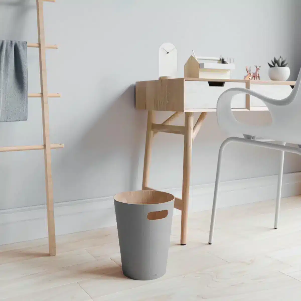 De elegante Umbra papiermand Woodrow van Henry Huang is meer dan een gewone bak. De minimalistische papierbak van Umbra, gemaakt van gebeitst hout en verkrijgbaar in verschillende kleuren lakafwerking, is een verademing in elk kantoor. Een handvat aan de zijkant is een handige functie om de papierbak snel en efficiënt te legen. De bak is ontworpen door de Taiwanese ontwerper Henry Huang.