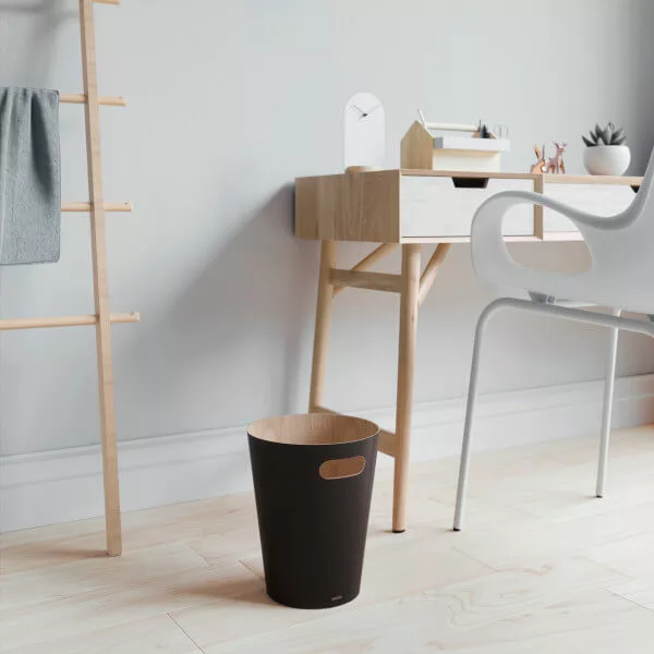 De Woodrow prullemand / afvalemmer van Umbra is vervaardigd van hout en ideaal om te gebruiken voor het scheiden van papieren afval. De emmer heeft een zwarte coating aan de buitenkant en heeft één handvat om de emmer gemakkelijk te legen.
